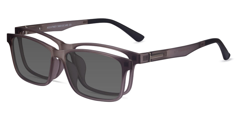 Gone are the days of constantly switching from eyeglasses to sunglasses with every passing cloud. Ascutney makes keeping your eyes protected and your style on point easier than ever — featuring a sleek rectangular face front with sunglass lenses that magnetically connects to the frame. Complete with a gray finish for added style, and spring hinges for extra comfort.