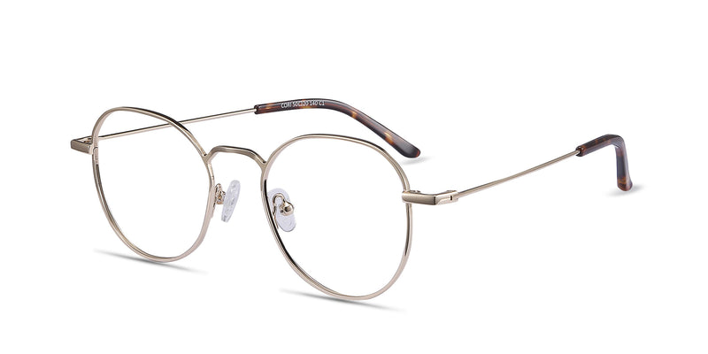 Retro charm with a surprising modern twist. Cori's Gold wire frame hails back to the good ol' days, while its sleek oval lenses and nose bridge call out to the future.