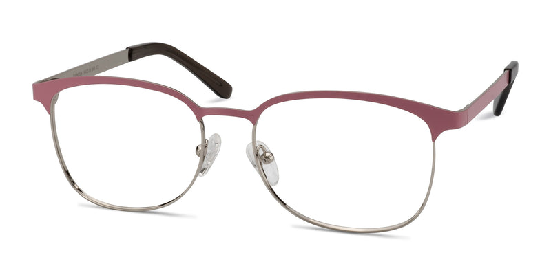 Be pretty in pink with these Pink and Silver eyeglasses. This full metal frame features an emphasized browline and a subtle keyhole nose bridge. The rounded lens frames and gently curved temples lend this frame a friendly and approachable vibe.