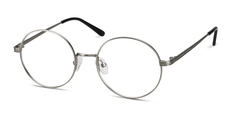 The vintage stylings of Inscription are great for developing your own idiosyncratic style. Bold circular lenses and a Silver metallic finish make this frame feel bold and classy.The best feature of this frame is definitely the intricate hinge embossments; the perfect extra touch on this lightweight frame.