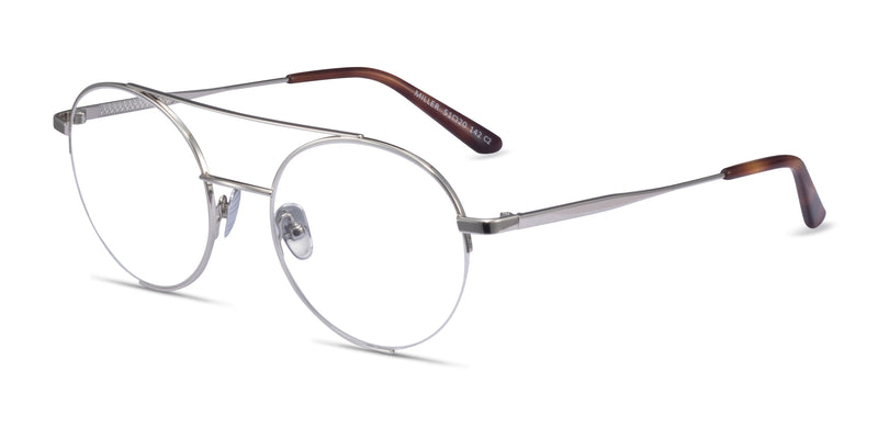 Miller is not your average aviator frame, featuring classic round lenses with semi-rimless metal eyewire for a totally unique look. The iconic double brow bar makes this style even more striking, while the silver finish is subtle enough for everyday wear. Complete with tortoiseshell temple tips and adjustable nose pads for a custom fit.