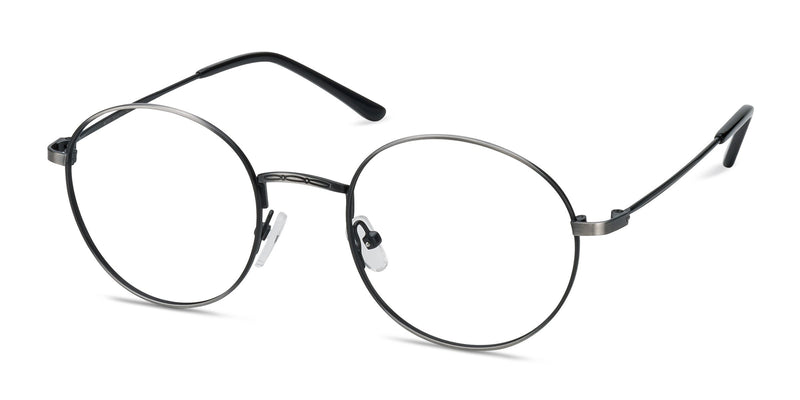Round, metal designs are back. Motif's full-rimmed frame design in gunmetal is delicate and precise, boasting a nose bridge with finely engraved metal details. Lightweight materials combined with adjustable nose pads provide daylong comfort for these fashionable eyeglasses.