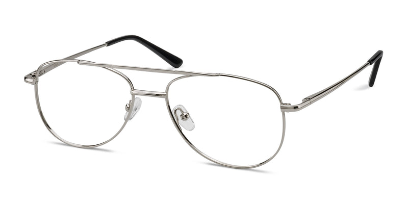 Tasker's flowing silver curves are strikingly sleek. This thin, metal frame boasts an iconic brow bar, straight nose bridge, adjustable nose pads, and black temple tips. These eyeglasses also make for a great pair of aviator sunglasses when you add tinted lenses.