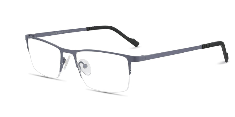A sleek sharp look that is streamlined, distinct and modern. This semi-rimless pair of eyeglasses has a beautiful gray finish on the thin frame that brings subtle sophistication to your style. Rectangular lenses and thin designed nose pads make sure they fit perfectly to suit your shape. The temple tips are squared in a comfortable material and at the same time stylish.