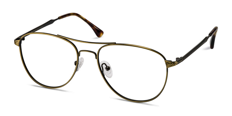 Metal eyeglasses in a classic aviator style. This sharp frame comes in bright finish and exaggerated square shaped lenses. Oversized lenses, thin nose bridge, iconic brow bar, adjustable nose pads, and acetate arm tips make this trendy style suitable for everyday wear.