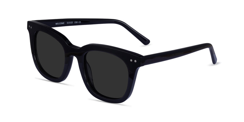 Bold square lenses and sleek black acetate come together to create Welcome — your next favorite pair of sunglasses, featuring a thick frame coupled with a classic silhouette for a versatile look. It's the perfect go-to pick for both UV protection and sunny day style.