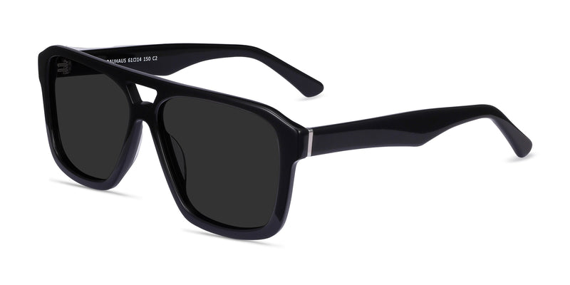 Bauhaus in black has never been bolder. This aviator-inspired frame is made from sturdy acetate, featuring a shape that shows off strong angles and a double brow bar worthy of a double take. The sturdy arms support these stately shades for a look that's ready to be in the spotlight.