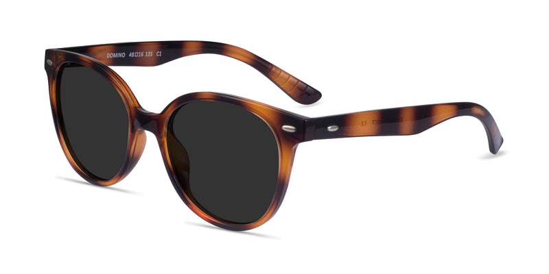The sunniest days call for the most stylish shades. Domino is a classic round frame fit for your little one, featuring a full-rim face front with a sophisticated tortoise finish. This retro-inspired look will have your kiddo feeling like a star. Complete with silver rivets and slightly curved temple tips for comfort.