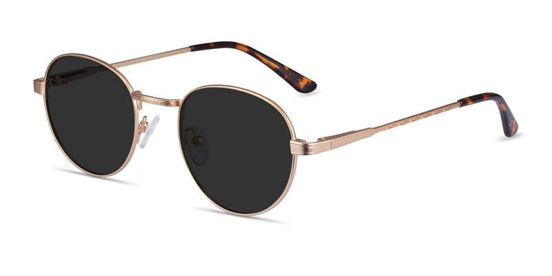The large, rounded lens frame and embossed nose bridge and temples are perfectly complemented by the bright Golden finish of these eyeglasses. The Brown Tortoise temple tips further add to this pair's charm, while the spring hinges ensure Sun Belleville is comfortable and fits well on any face.