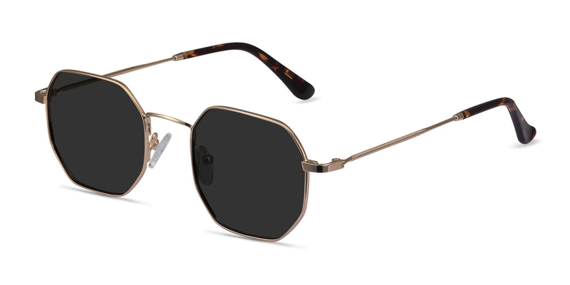 Reach new heights with Sun Soar. In striking Gold, this geometric sunglasses frame offers a unique and bold fashions statement. A pair of Tortoiseshell temple arms compliment the overall warmth of this design, making it an important homage to retro sunwear history. Adjustable nose pads offer extra comfort and wearability.