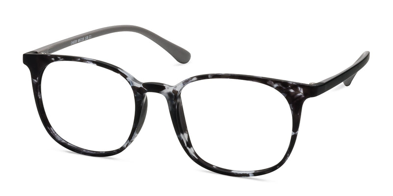 This lightweight, full-sized frame is sure to Cheer you up on a bad day! A sophisticated Swirled Gray finish and subtle design make Cheer great for a variety of occasions. Pick these up to add an adaptable and classy set of eyeglasses to your wardrobe.